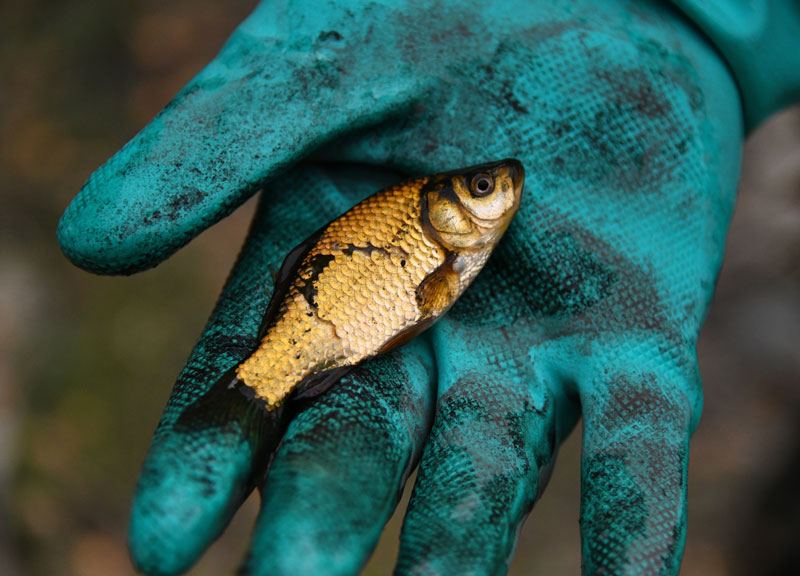 Illegally introduced goldfish in Heagle Park Pond in Hailey are eradicated using rotenone in 2020